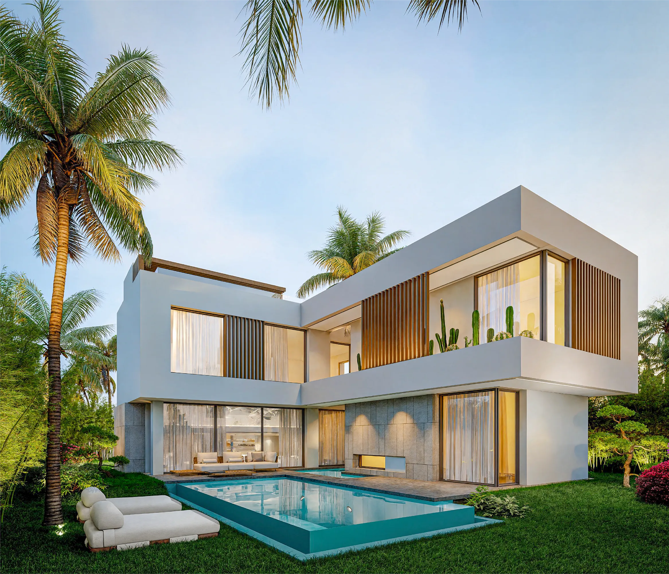 - Superficie bâtie : entre 280 et 300 m² par villa.